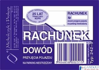 Rachunek dowód przyjęcia pojazdu na parking niestrzeżony