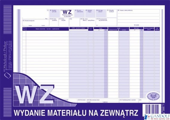| Nazwa B2B | WZ wydanie materiału na zewnątrz MICHALCZYK I PROKOP A4 80 kartek |