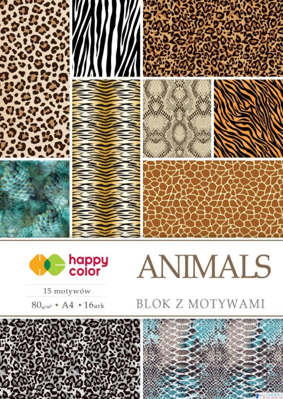 • Blok z motywami ANIMALS, 80g/m2, A4, 15+1 ark, 15 motyw, Happy Color HA 3808 2030-M