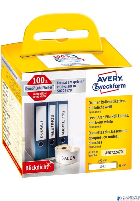 • Etykiety kryjące na segregatory Avery Zweckform w rolce do drukarek termicznych