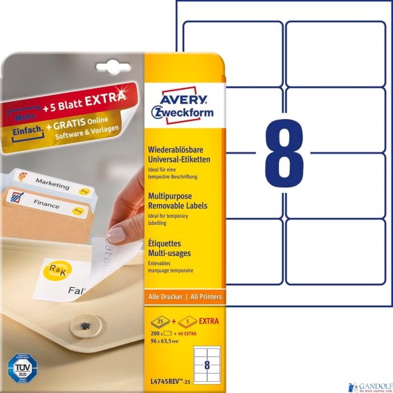 Usuwalne Etykiety AVERY ZWECKFORM uniwersalne A4, 25 ark./op., 96 x 63,5 mm, białe |