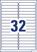 Technologia druku:•INK JET: Tak•LASER: Tak•LASER COLOR: Tak•KSERO: TakCechy produktu:•Rozmiar etykiety (mm): 96 x 16,9•Etykiet / arkusz: 32•Arkuszy/ opakowanie: 30•Etykiet/ opakowanie: 960•Kolor: białe•Format: A4•Rzędów/ arkusz: 2x16•Certyfikaty: FSC