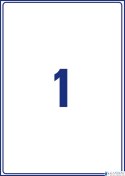 Technologia druku:•INK JET: TakCechy produktu:•Rozmiar etykiety (mm): 199,6 x 289,1•Etykiet / arkusz: 1•Arkuszy/ opakowanie: 25•Etykiet/ opakowanie: 25•Kolor: białe•Format: A4•Rzędów/ arkusz: 1x1•Certyfikaty: FSC