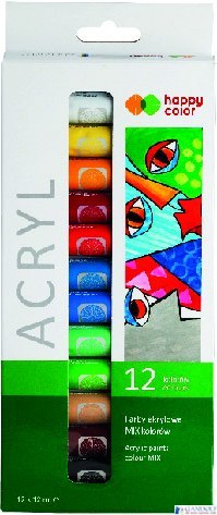 • Farba akrylowa hobby, zestaw 12 kolorów x 12 ml, Happy Color HA 7370 0012-H12
