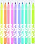 Flamastry ColorPeps PASTEL -korpus i tusz w delikatnych ale wyrazistych pastelowych kolorach. Trwały tusz, nie rozmazuje się. Pozostawione bez skuwki przez 7 dni nie zasychają. Zmywalne ze skóry rąk i większości tkanin. Bezpieczna, zablokowana przed usunięciem, wytrzymała końcówka o grubości _ 2,8 mm. Idealne do pisania i kolorowania. Transparentna, wentylowana skuwka. Produkt bezpieczny, nietoksyczny - wyprodukowane zgodnie z wszystkimi regulacjami dotyczącymi produktów dla dzieci.