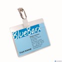 Do dowodów lub kart identyfikacyjnych. Z mocno przezroczystej twardej folii. Z obrotowym klipsem umożliwiającym pionowe zaczepienie. Kieszeń otwarta od góry umożliwia szybkie wyciąganie dowodu bez wyciągania klipsa. Z etykietami do zadrukowania. Poziomy: 60 x 90 mm.