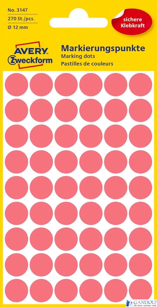 | Nazwa B2B | Kółka AVERY ZWECKFORM do zaznaczania kolorowe 270 etyk./op., _12 mm, czerwone odblaskowe |