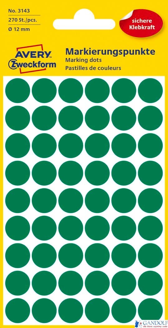 | Nazwa B2B | Kółka AVERY ZWECKFORM do zaznaczania kolorowe 270 etyk./op., _12 mm, zielone |
