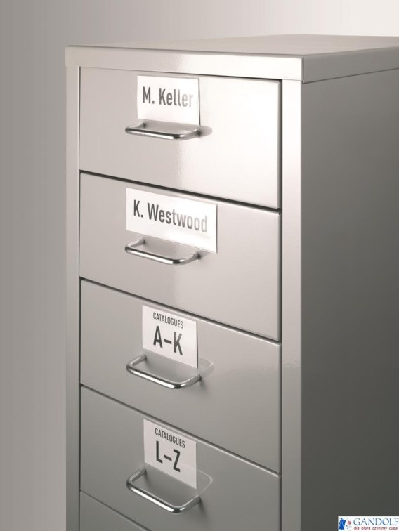 Okienko samoprzylepne do oznakowania koszy zawieszkowych, regałów, szuflad, szaf i urządzeń technicznych. Długość 200 mm, możliwość docięcia na odpowiednią długość. Etykiety w komplecie, które można opisać przy pomocy bezpłatnego programu DURAPRINT_. Wysokość (mm) 30 Wysokość czcionki (mm) 28,5
