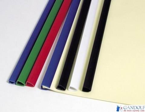 Listwy wsuwane Standard 15 mm__ proste listwy plastikowe z jedną zaokrągloną końcówką_ możliwość oprawienia listwą do 75 kartek formatu A4 bez użycia bindownicy_ dostępne kolory: biały, czerwony, niebieski, zielony, czarny, przezroczyste_ opakowanie: 50 sztuk w pudełku kartonowym