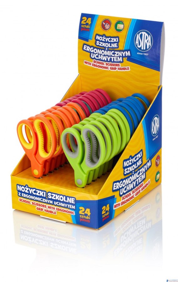 Nożyczki szkolne z ergonomicznym uchwytem i podziałką Astra - display 24 sztuki, 407118006
