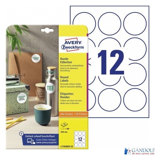 Katalog_2021naz Okrągłe etykiety usuwalne 60 mm 25 ark. Avery Zweckform L7104REV-25