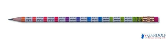Ołówek grafitowy zakończony gumką. Okrągły w przekroju, twardość HB. Lakierowany, z nadrukiem w formie tabliczki mnożenia. _Długość: 189mm