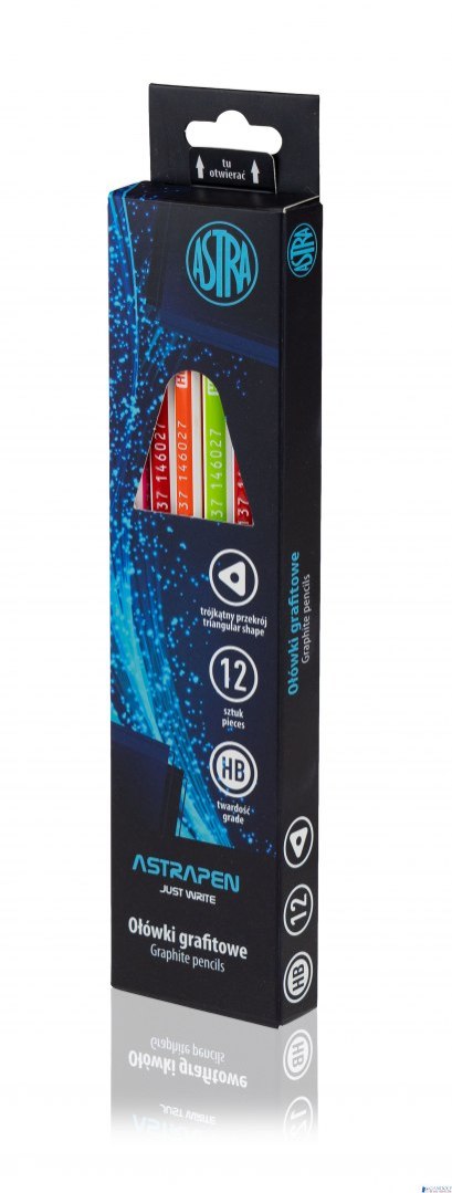 Ołówki grafitowe Astra z czarnego drewna z gumką HB box 12 sztuk, 206120014