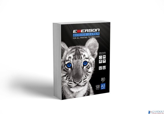 Papier ksero A5 marki Emerson. Biały papier formatu A5, czyli pół standardowego formatu A4. Wysokowydajny papier do kolorowego druku laserowego i kopiowania. Idealny do druku prezentacji, kolorowej grafiki, wykresów, list produktów, korespondencji biznesowej i bezpośredniej, biuletynów, raportów sprzedaży. Jednostka sprzedaży: 1 ryza 500 arkuszy. Format A5, gramatura 80g/m_, CIE 146