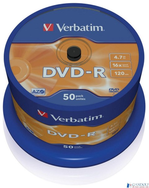 | Nazwa B2B | Płyta VERBATIM DVD-R cake box 50 4.7GB 16x Matt Silver |