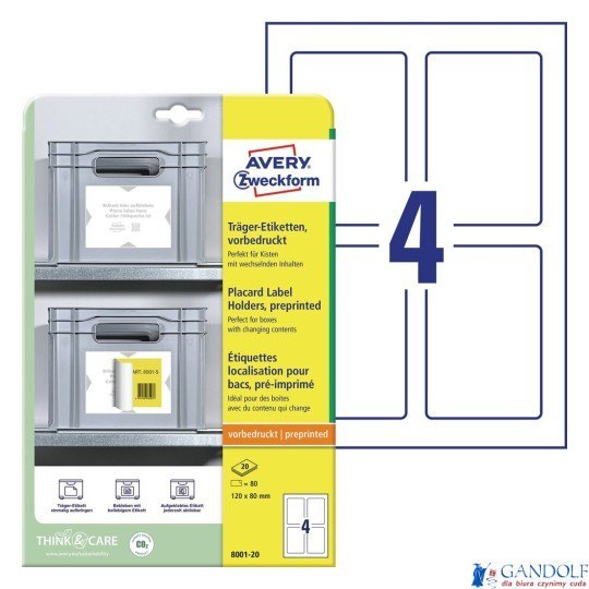 • Podkładki pod etykiety, 120 x 80 mm, 20 ark. (już z nadrukiem), Avery Zweckform 8001-20