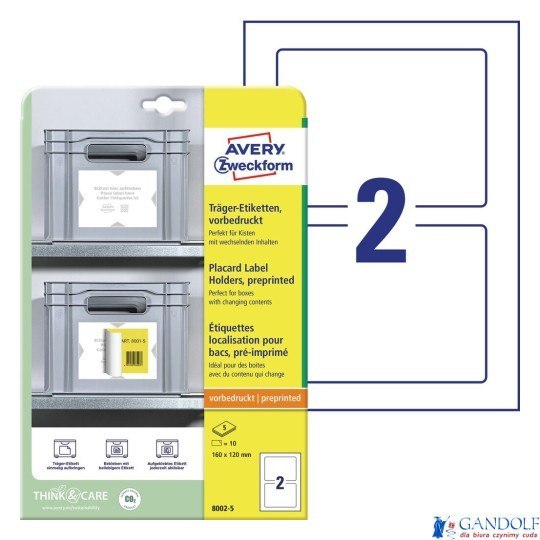 • Think & Care _ Firma Avery Zweckform od 2020 roku jest neutralna dla klimatu: emisje gazów cieplarnianych w zakładzie firmy są równoważone przez certyfikowane projekty ochrony klimatu. Od 2014 roku wykorzystywana jest wyłącznie ekologiczna energia elektryczna/gaz. Badania, rozwój, produkcja, logistyka oraz administracja w siedzibie firmy w Oberlaindern w Bawarii gwarantują najwyższe standardy jakości i ochrony środowiska oraz krótkie trasy dostaw. Podkładki pod etykiety są produkowane w sposób neutralny dla klimatu, a emisja gazów cieplarnianych z materiału jest kompensowana.