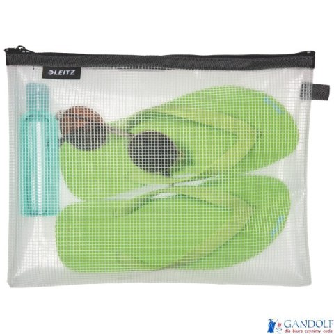 Element kolekcji Leitz WOW oferującej szeroki wybór stylowych produktów biurowych, zaprojektowanych w przykuwających wzrok stylowych kolorach, przeznaczonych dla osób pracujących w biurach lub często przemieszczających się_Praktyczny sposób porządkowania przedmiotów codziennego użytku w torebce, torbie na laptopa, plecaku szkolnym, bagażu podróżnym lub w samochodzie, jak również ochrony dokumentów przed zachlapaniem podczas rejsu łódką_Duża saszetka do porządkowania większych przedmiotów: 30 x 23 cm_Przezroczysty materiał pozwala na podgląd zawartości_Wykonana z nietoksycznego, wytrzymałego, wodoodpornego i nadającego się do prania materiału EVA_Mocny, lekko przesuwający się suwak_Różne wymiary i kolory ułatwiają porządkowanie rzeczy
