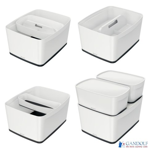 Stylowy, dwukolorowy pojemnik ułatwiający szybkie, bezproblemowe porządkowanie i przechowywanie rzeczy_W połączeniu z pojemnikiem wąskim lub organizerem dużym bądź małym stanowi idealne rozwiązanie do przechowywania zawartości w uporządkowany sposób_Wykonany z trwałego, odpornego na zadrapania, wodoodpornego, a do tego atrakcyjnie prezentującego się tworzywa ABS. Można w nim bezpiecznie przechowywać żywność. Nie zawiera bisfenolu._Oszczędność miejsca: na standardowej półce zmieści się pojemnik duży MyBox z ustawionymi na nim 2 pojemnikami małymi MyBox_Delikatny zatrzask przytrzymuje pokrywę, nie przeszkadzając jednocześnie w jej łatwym zdejmowaniu_Nieużywane pojemniki można przechowywać jedne w drugich, oszczędzając w ten sposób miejsce_Łatwe do czyszczenia, z zaokrąglonymi krawędziami