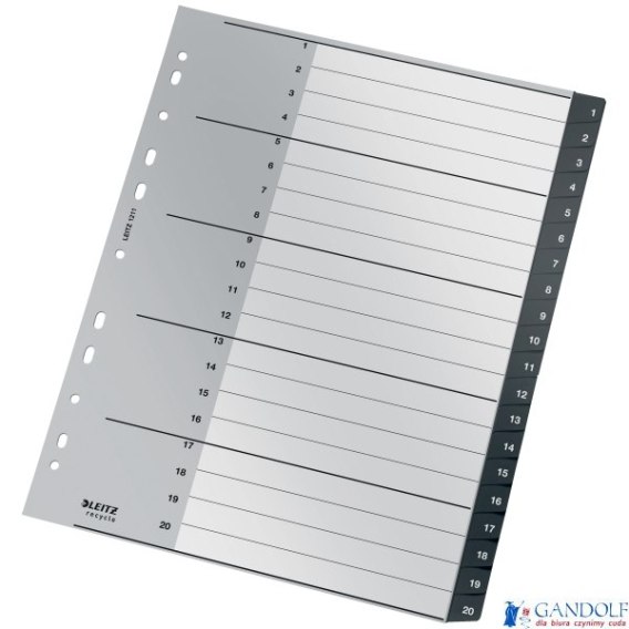 Przekładki Recycle 1 - 20, A4, PP, czarne Leitz, 12110000