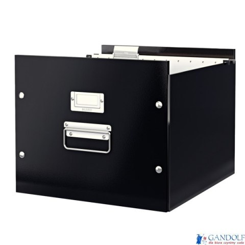 Pudło na teczki zawieszane Leitz Click&Store_- do segregowania i przechowywania dokumentów w teczkach zawieszanych_- z mocnego kartonu pokrytego laminowanym papierem, który daje ochronę przed światłem i wilgocią_ - mieści do 50 teczek zawieszanych_- pudła można ustawiać jedno na drugim_- łatwo się składa, mocowanie ścianek przy pomocy zatrzasków_- wygodne uchwyty do przenoszenia_- metalowa ramka do opisu zawartości_- jednostka sprzedaży 1 sztuka