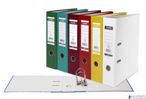 Segregator ekologiczny XXL z mechanizmem Bantex__oklejony na zewnątrz folią PP, wewnątrz biała i nabłyszczana wyklejka papierowa__dwustronna wymienna etykieta opisowa w kolorze segregatora__dwa okute otwory RADO w przedniej okładce__dolne krawędzie wzmocnione metalową szyną__jednostka sprzedaży 1 sztuka