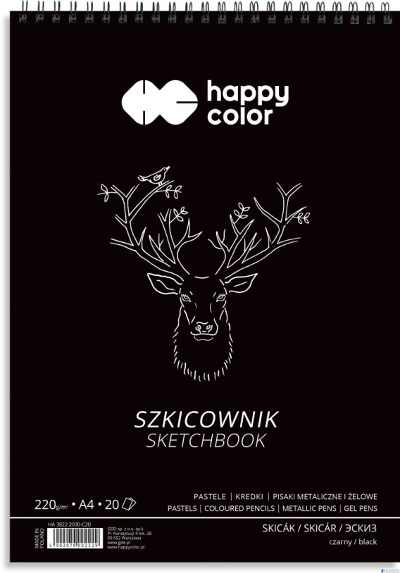 Szkicownik na spirali CZARNY A4, 20 ark, 220g, Happy Color HA 3822 2030-C20