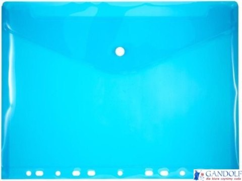 Koperta wykonana z kolorowego, transparentnego polipropylenu o grubości 0,18 mm. Zapinana na zatrzask. Europerforacja umożliwia wpięcie teczki