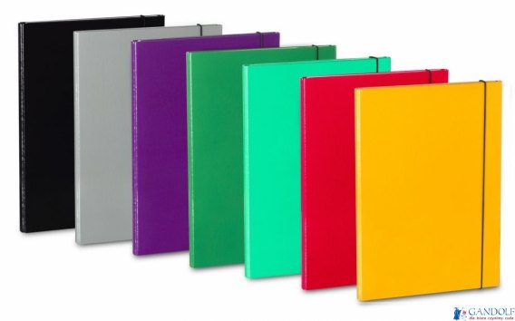 Wykonana z twardej 2mm tektury powleczonej folią PP. Posiada czarną wyklejkę z wysokiej jakości surowca. Zamykana na gumkę. Szerokość grzbietu do 20 mm. Innowacyjna gama kolorystyczna. Zamykana na gumkę o szerokości 2cm.