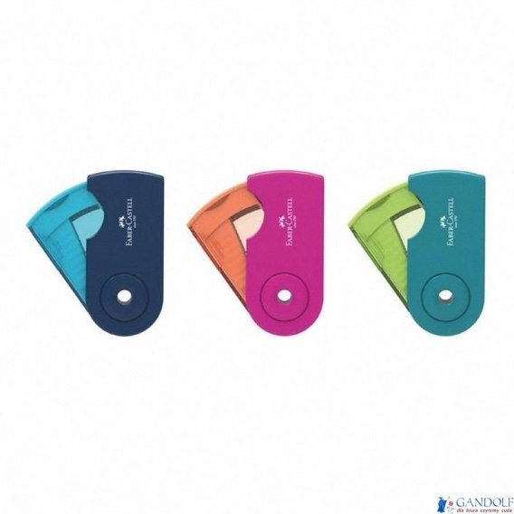 Temperówka pojedyncza Sleeve Mini Faber-Castell w kolorze różowo-pomarańczowym, turkusowo-jasnozielonym i niebiesko-jasnoniebieskim. Przeznaczona do klasycznych i trójkątnych kredek i ołówków w standardowym rozmiarze. Zaprojektowana do prostego ostrzenia. Rękaw zapobiega wypadaniu ostrużyn. Ergonomiczny kształt dla wygodnego i komfortowego użycia. Ze śrubką bezpieczeństwa.