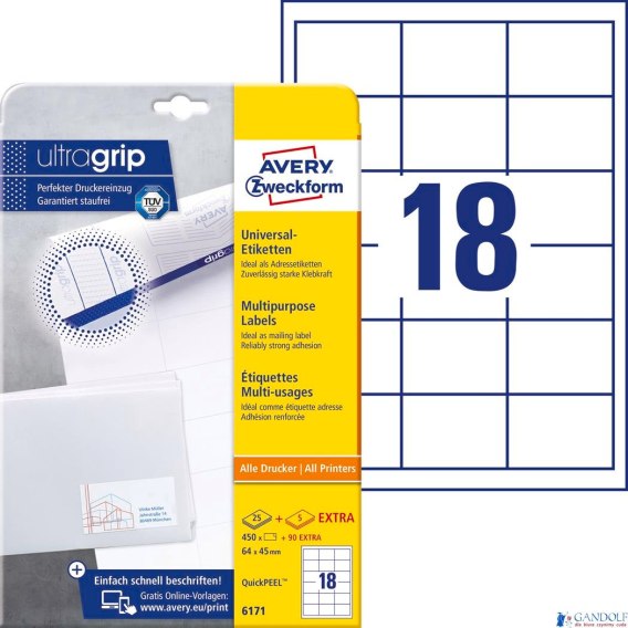 Trwałe etykiety uniwersalne 6171 64 x 45 30 ark Avery Zweckform |