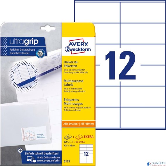 Trwałe etykiety uniwersalne 6175 105 x 48 30 ark Avery Zweckform |