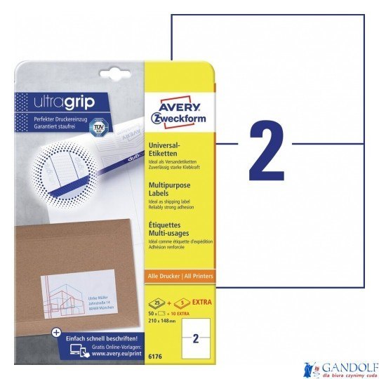Trwałe etykiety uniwersalne 6176 210 x 148 30ark Avery Zweckform |