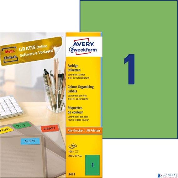 Etykiety AVERY ZWECKFORM trwałe kolorowe A4, 100 ark./op., 210 x 297 mm, zielone |