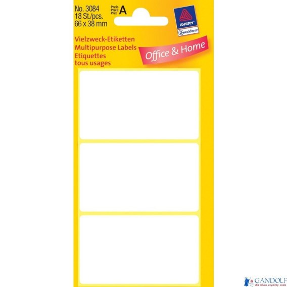 Trwałe minietykiety do opisywania ręcznego, 18 etyk./op., 76 x 39 mm, białe, AVERY ZWECKFORM, 3081