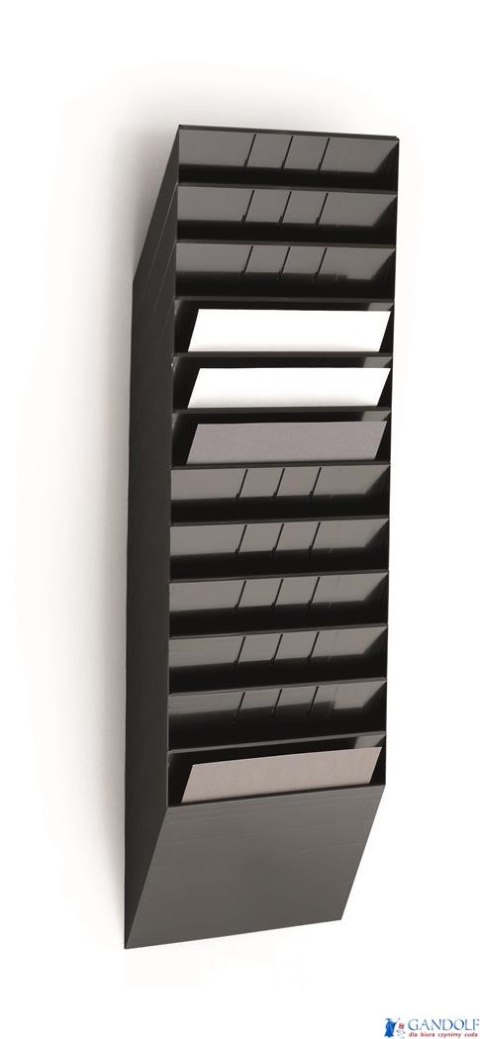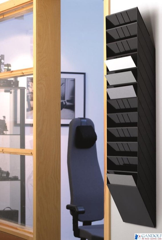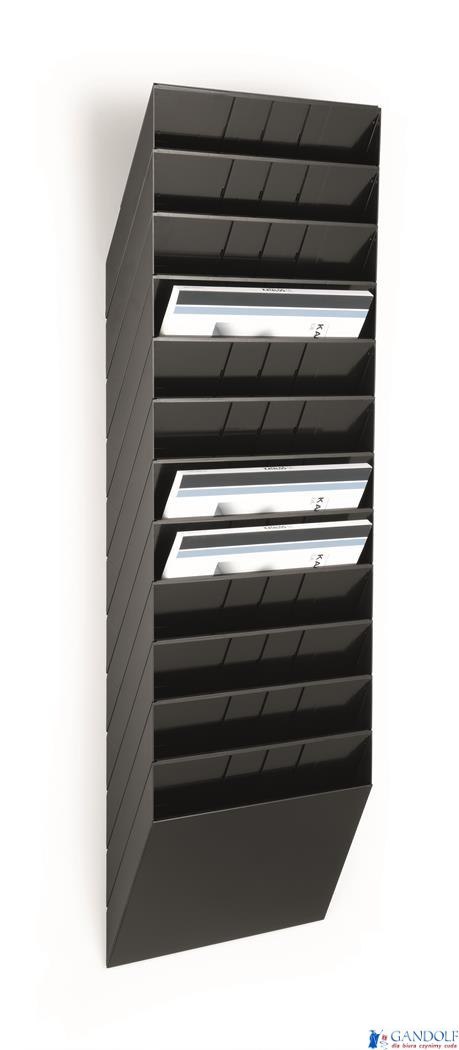 Zestaw 12 pojemników na dokumenty formatu A4 w układzie poziomym. Wymiary: 348 x 1045 x 95 mm (SxWxG).