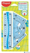 Zestaw geometryczny FLEX MINI, wykonany ze specjalnego tworzywa, które gwarantuje 100% odporności na złamania. Efektowny gumowany element na całej długości linijki poprawia jej elastyczność. Skład zestawu: linijka 15 cm bez uchwytu, 1 ekierka 60 stopni 12cm, 1 ekierka 45 stopni 12 cm i 1 katomierz 180 stopni 10 cm. Dwie wersje kolorystyczne: niebieskie i zielone. Pudełko 20 sztuk. JS 1 szt.