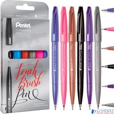Zestaw pisaków pędzelkowych do kaligrafii i liternictwa SES15C-ST6ACENPVPL PENTEL